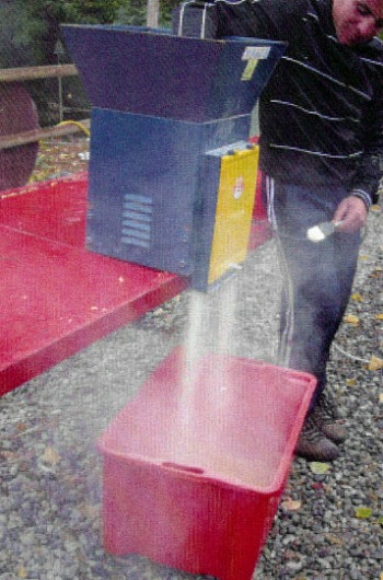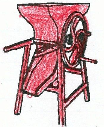Dopo aver sgranato le pannocchie, abbiamo messo i chicchi di mais nel mulino e Cristian li ha macinati.