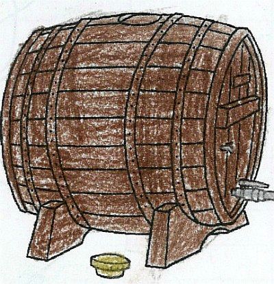 Nella cantina, abbiamo travasato il mosto in una botte di legno.