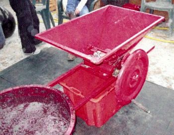 Abbiamo pigiato l’uva, prima con i piedi e poi nella pigiatrice.