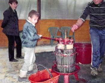 Con il torchio, abbiamo separato le vinacce dal mosto.