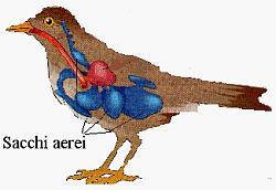 Gli uccelli hanno dei sacchi aerei che sono in comunicazione con i polmoni e riempiendosi d’aria rendono il corpo più leggero.