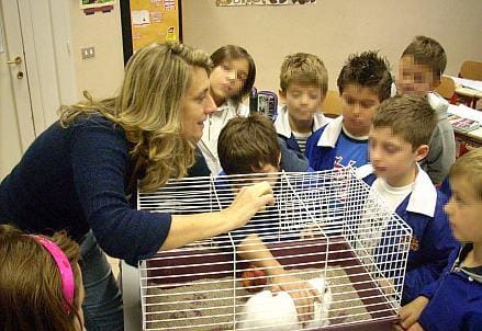 I bambini osservano la grandezza dell’animale, il pelo (lunghezza, colore e morbidezza), il numero delle zampe, le orecchie (lunghezza, posizione e movimento) gli occhi, il naso e il suo movimento, la grandezza del cranio che misurano comparandolo con una mela vicino al coniglio, al tatto sentono caldo e notano la colonna vertebrale e molto altro ancora.