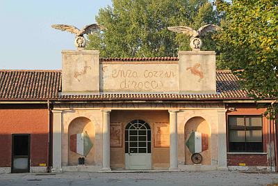 Il nucleo originale delle costruzioni risale agli anni appena precedenti l’inizio della prima guerra mondiale, e ha tutto il fascino di un sito di «archeologia industriale», che varrebbe di per se stesso una visita, con le sue strutture murarie in mattoni non prive di sobrie decorazioni, i tetti sostenuti da bellissime capriate in legno a vista, e vari edifici ausiliari, fra i quali una cappella.