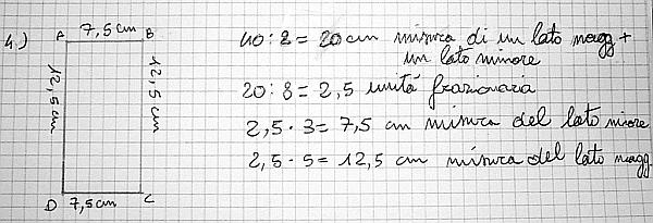 «Il perimetro di un rettangolo misura 40 cm; un lato è i 3/5 dell’altro. Quanto misurano i lati del rettangolo?»