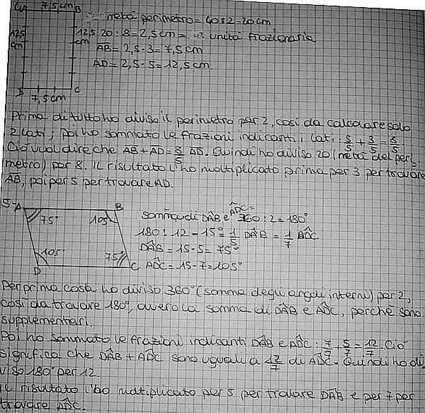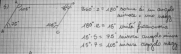 «Un parallelogramma ha un angolo pari ai 5/7 di un altro. Quanto misurano gli angoli del parallelogramma?»