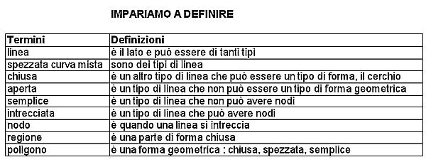 La tabella raccoglie alcuni tentativi di definire le caratteristiche delle linee proposti dagli alunni.