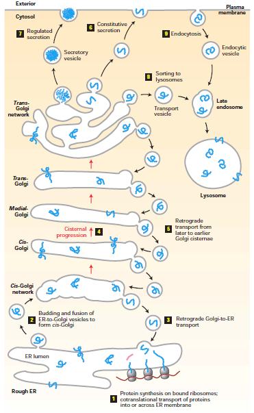 Tuttavia non tutte le proteine stazionano permanentemente nel citosol, in quanto la loro presenza è richiesta in altre localizzazioni intracellullari o anche al di fuori della cellula. Il sistema primariamente destinato allo smistamento delle proteine consiste del reticolo endoplasmatico e dell’apparato del Golgi.