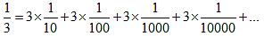 Ovvero una scrittura infinita. Usando le frazioni decimali, ovvero i numeri con la virgola, non si può ottenere 1/3 con un procedimento finito, la scrittura precedente è equivalente a una espressione in cui vengono addizionati infiniti termini