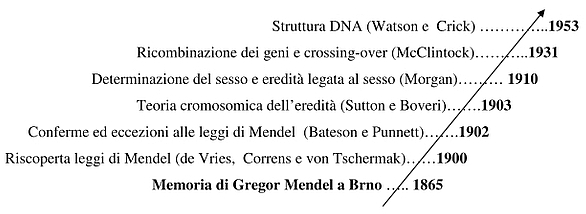 In un momento storico in cui erano praticamente sconosciuti gli aspetti citologici della duplicazione e della ripartizione dei cromosomi nelle divisioni cellulari (si dibatteva ancora aspramente sulla generazione spontanea), e ancor più lo erano le caratteristiche chimiche del materiale ereditario, i risultati degli esperimenti condotti da Mendel tra il 1854 e il 1864, e la loro interpretazione presentata in una comunicazione (Versuche über Pflanzenhybriden, Ricerche sugli ibridi delle piante) alla Società di Scienze naturali di Brno nel 1865 ponevano le basi per pensare l’eredità in un modo radicalmente nuovo.