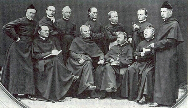I membri del monastero agostiniano di Brno nel 1862; l’abate, Cyrill Napp, è il terzo da sinistra (seduto in prima fila); dietro di lui Gregor Mendel