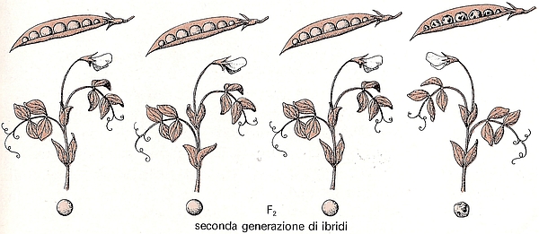 Così Mendel descrive i risultati dell’incrocio tra gli ibridi di prima generazione: «In questa generazione, unitamente ai caratteri dominanti riappaiono i recessivi con tutte le loro caratteristiche ben definite, e lo fanno in un rapporto medio tipico di 3:1, per cui in media ogni quattro piante di questa generazione, tre mostrano il carattere dominante e una quello recessivo.»