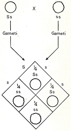 Per esempio, nel caso si incrocino piante eterozigoti (Ss) con piante omozigoti recessive (ss) si attendono semi lisci (Ss) e semi rugosi (ss) nel rapporto 1:1.