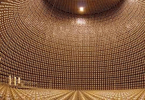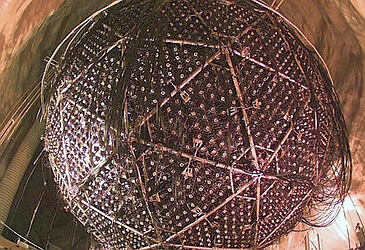 [A destra: Rivelatore del SNO. Questo laboratorio è posto nella miniera di Creighton, nelle vicinanze di Sudbury nell’Ontario (Canada)]