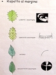 A ogni forma abbiamo dato un nome in base a ciò cui essa assomigliava. Dopo la classificazione in base alla forma abbiamo fatto la stessa cosa con il tipo di margine disegnando, accanto alla foglia, un’immagine che ne richiamasse le caratteristiche (vedi immagine a sinistra).