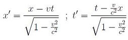 Figura 4: Dalla trasformazione di Galileo a quella di Lorentz. La trasformazione di t → t’, coinvolge anche la coordinata x (quarta equazione)