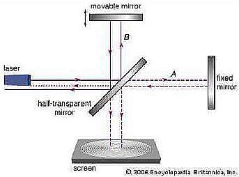 Nel 1887, l’esperimento di Michelson – Morley mediante ‘uso dell’interferometro (Figura 2), aveva dimostrato che la figura d’interferenza (che appare nello screen) non cambia qualunque sia l’orientamento dell’interferometro rispetto alla velocità v di rivoluzione della Terra, come invece uno si aspetterebbe.