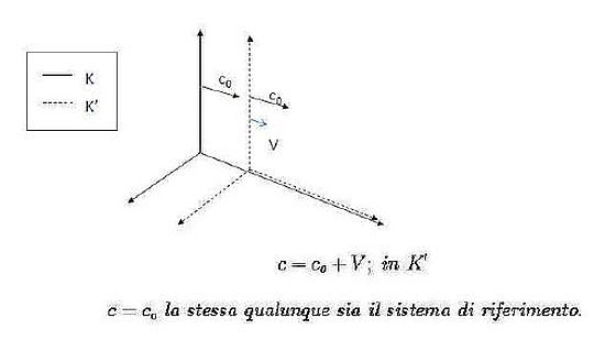 La velocità della luce c non si compone quindi con quella della Terra né con quella di alcun altro riferimento, rimane sempre: c = c0.