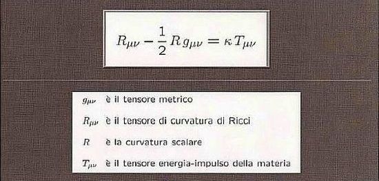 Si tratta dell’uguaglianza di due operazionali, l’uno, , funzione della metrica spazio-temporale, l’altro, , funzione delle sorgenti gravitazionali:
