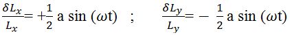 Se prendiamo in esame lo stato di polarizzazione «+», e assumiamo che i due bracci dell’interferometro, che cade liberamente (Principio di Equivalenza, vedi L’eredità scientifica di A. Einstein, Emmeciquadro Emmeciquadro n.61 – Giugno 2016) siano orientati secondo gli assi x-y, il braccio Lx si contrarrà e si espanderà, mentre quello Ly si espanderà e si contrarrà con fase diversa (vedi Figura 7). Precisamente: