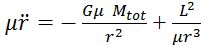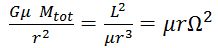 essendo L il momento angolare rispetto al baricentro e r la distanza fra le due masse orbitanti attorno al comune baricentro.