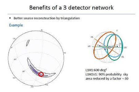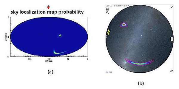 Con solo due rivelatori, la localizzazione della sorgente non è molto accurata: 590 deg2 al 90% di probabilità che si riducono a 140 deg2 al 50% di probabilità.