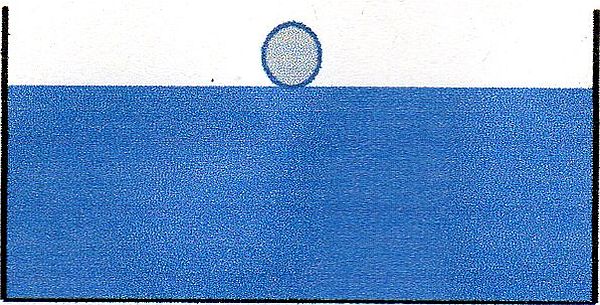 Riempite poi una bacinella di acqua e appoggiate la pallina sulla superficie dell’acqua. Vedrete che la pallina galleggia senza difficoltà.