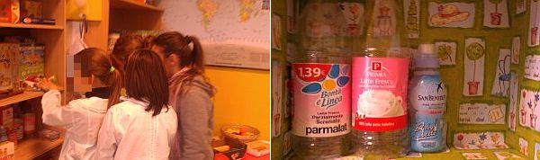 Abbiamo cominciato con l’allestire uno scaffale, su cui sono stati disposti prodotti veri portati da casa, divisi per categorie.