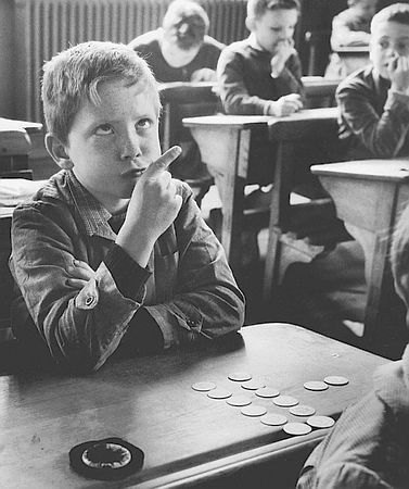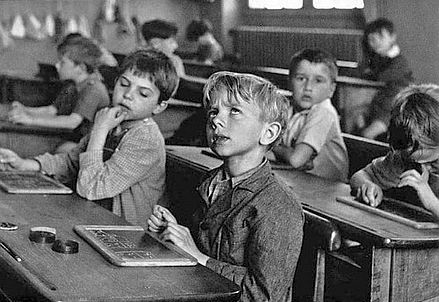 [A sinistra: Robert Doisneau (1912 – 1994) – Une salle de classe – Parigi, 1957]