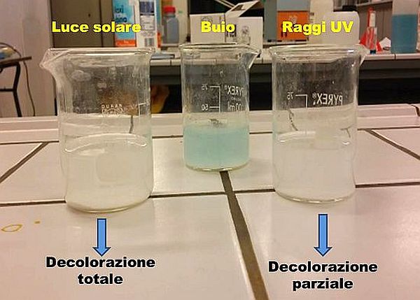 Decolorazione di soluzioni contenenti blu di metilene per azione del TiO2 e della luce