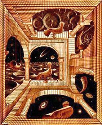 «Qualche volta ho l’illusione che tutti siano presi dalla pulsione dell’impossibile. La realtà che ci circonda, questo mondo tridimensionale, è troppo comune, troppo noioso, troppo scontato. Aspiriamo ardentemente all’innaturale o al soprannaturale, verso ciò che non esiste, verso i miracoli. Come se la realtà di tutti i giorni non fosse sufficientemente enigmatica! Può succedere infatti a ognuno di noi di uscire all’improvviso e con l’estasi dentro al cuore, dal solco del quotidiano, anche per un solo momento. Può succedere che improvvisamente diventiamo sensibili al miracolo che ci circonda. È il miracolo di quella stessa tridimensionalità dello spazio in cui giorno per giorno arranchiamo, come se spingessimo la macina di un mulino.» [da M. C. Escher, Esplorando l’infinito, Garzanti, 1991, p. 151]