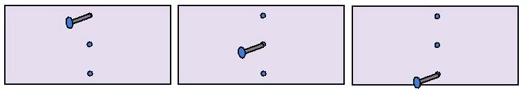 Nel terzo caso, poiché il punto di vincolo è più basso del baricentro (l’equilibrio perciò è instabile) il foglio di cartone non rimane a lungo in quella posizione ma inizia a ruotare attorno al chiodo portandosi in una condizione di equilibrio stabile (cioè col baricentro più basso, come nel caso iniziale).