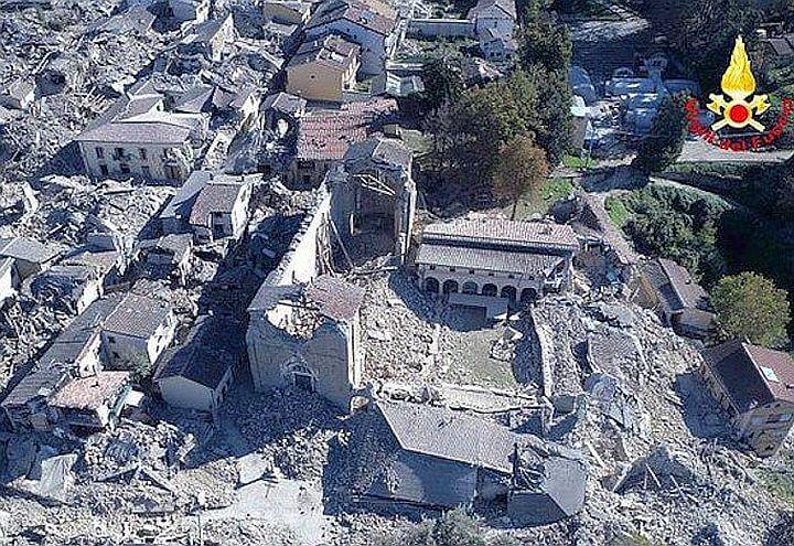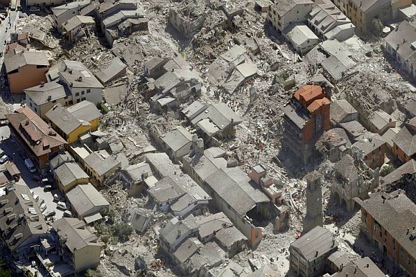 Il centro di Amatrice, visto dall’alto, dopo la scossa di terremoto del 24 agosto 2016