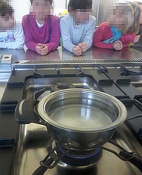 Per capire di più cosa succede quando scaldiamo l’acqua, abbiamo svolto un semplice esperimento grazie anche alla possibilità di utilizzare la cucina della scuola in condizioni di sicurezza.