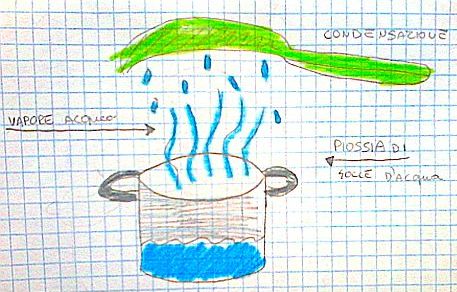 Ci si è accorti che dal pentolino usciva una specie di fumo: era un fumo caldo, quasi «goccioline» fini fini che salivano verso l’alto, cui abbiamo dato il nome di vapore acqueo.