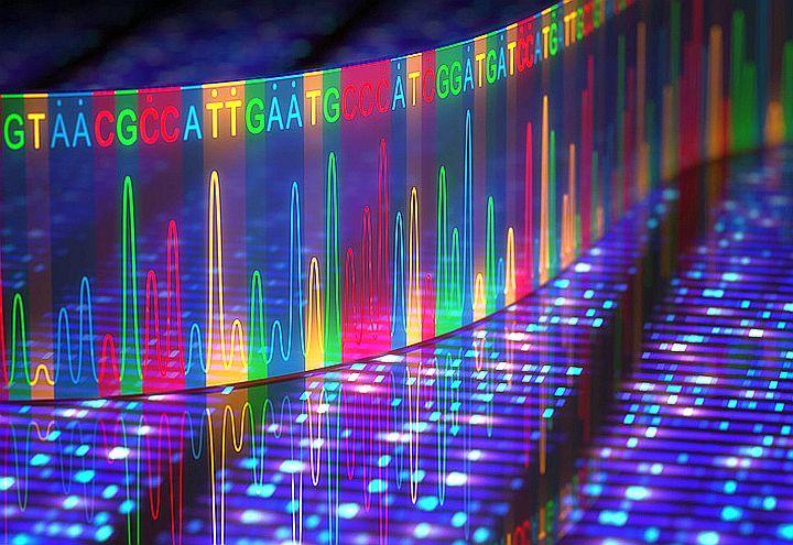 Rappresentazione in 3D di una sequenziazione del DNA effettuata con elettroforesi