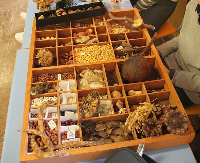 Ne abbiamo osservato la varietà di forme e di dimensioni. Abbiamo registrato se erano avvolti in un involucro coriaceo o legnoso. Abbiamo provato a spezzarli e abbiamo visto che si possono riconoscere due grandi gruppi: monocotiledoni e dicotiledoni.