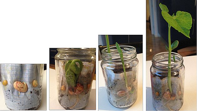 I semi sono stati infilati tra il vetro e la carta, che a sua volta era a contatto con la sabbia umida, così i ragazzi hanno potuto osservare la piantina isolata nelle prime fasi della germinazione.