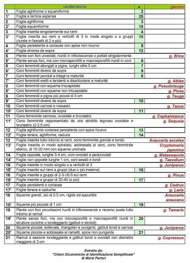La prima tappa è il risultato di un lavoro fatto nei giardini di via Aicardo adiacenti alla scuola dove, utilizzando delle chiavi dicotomiche semplificate (di cui mostro un esempio nella tabella che segue), abbiamo classificato gingko, pino, acero e noce nero, i primi quattro alberi incontrati.