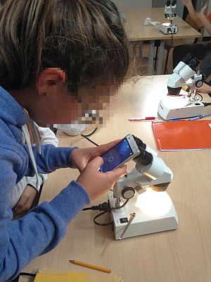 In classe abbiamo lavorato divisi in sei gruppi, con un microscopio per gruppo; all’open day i vetrini erano già pronti e i microscopi rivolti verso i visitatori.