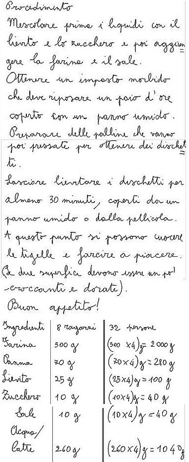 Mentre la pasta lievita, scriviamo gli ingredienti e il procedimento.