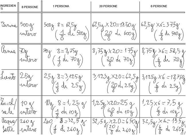 Abbiamo osservato che questa idea era la migliore, perché in questo modo avremmo avuto un vantaggio: la ricetta si poteva modificare non solo per 20 persone, ma anche per qualunque altro numero desiderato di persone!