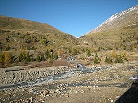 [A destra. Importanza ecologica dei ghiacciai: ricolonizzazione a larici delle aree abbandonate nell’ultimo mezzo secolo (foto C. Smiraglia)]