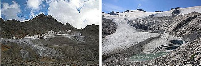 Se si considerano due dei più grandi ghiacciai italiani odierni, quello dell’Adamello nel gruppo montuoso omonimo e quello dei Forni nel gruppo Ortles-Cevedale, si constata che entrambi dalla metà del XIX secolo hanno perso circa la metà della loro superficie.