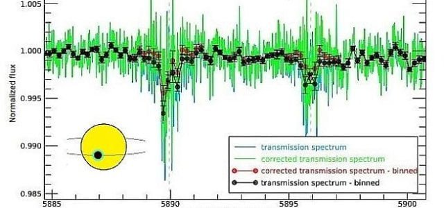 Il primo punto del lavoro di ricerca del mio gruppo è stato rimuovere tutto il contributo della nostra atmosfera attraverso una correlazione con la quantità di aria terrestre attraversata dalla luce della stella. Successivamente, utilizzando la spettroscopia di trasmissione abbiamo ottenuto il segnale relativo all’atmosfera del pianeta extrasolare che stavamo cercando.
