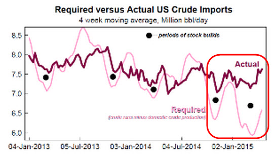 Proprio sicuri che non sia una strategia voluta? Guardate il grafico a fondo pagina, allegato a uno studio sul tema compiuto dalla Cornerstone Analytics, quindi non dal Cremlino o da Riyad: nei sei mesi conclusisi lo scorso aprile, il livello di import petrolifero relativo alle necessità o al fabbisogno di riserva da parte delle raffinerie è cresciuto non di una volta ma di due: c’è di fatto un gap di 1 milione di barili al giorno, a fronte di un aumento degli stock che è stato di 5-10 milioni di barili per settimana.