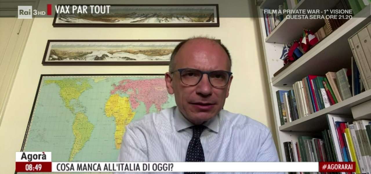 , incalzato da Luisella Costamagna, si è espresso così a proposito di una possibile alleanza strutturale con Movimento 5 Stelle e Leu dopo le elezioni amministrative: «E’ evidente che non è una passeggiata, soprattutto perché oggi votiamo le amministrative laddove nel 2016 il M5s vinse contro il Pd. Quelle amministrazioni, a Roma e Torino, hanno visto il Pd all’opposizione, la Raggi si ricandida mentre a Torino c’è una dialettica. Sono passaggi difficili, li stiamo gestendo. Il rapporto con Conte è molto positivo, ma anche con il M5s in generale. Come a Napoli, troviamo delle decisioni molto importanti». Negli ultimi giorni si è parlato a lungo del rapporto tra il segretario Pd e Matteo Salvini, Enrico Letta ha confermato che sarà possibile trovare una sintesi con il leghista in materia di riforme: «Non è una questione di “si può trovare”, ma di “si deve trovare”. Le risorse dell’Europa necessitano di alcune riforme. Noi sosteniamo la ministra Cartabia con grande forza per la riforma della giustizia. C’è la questione fiscale, fondamentale: il fisco così com’è non va. Serve un fisco più basso sui redditi medio-bassi, che aiuti la crescita delle imprese e che premi la fedeltà».