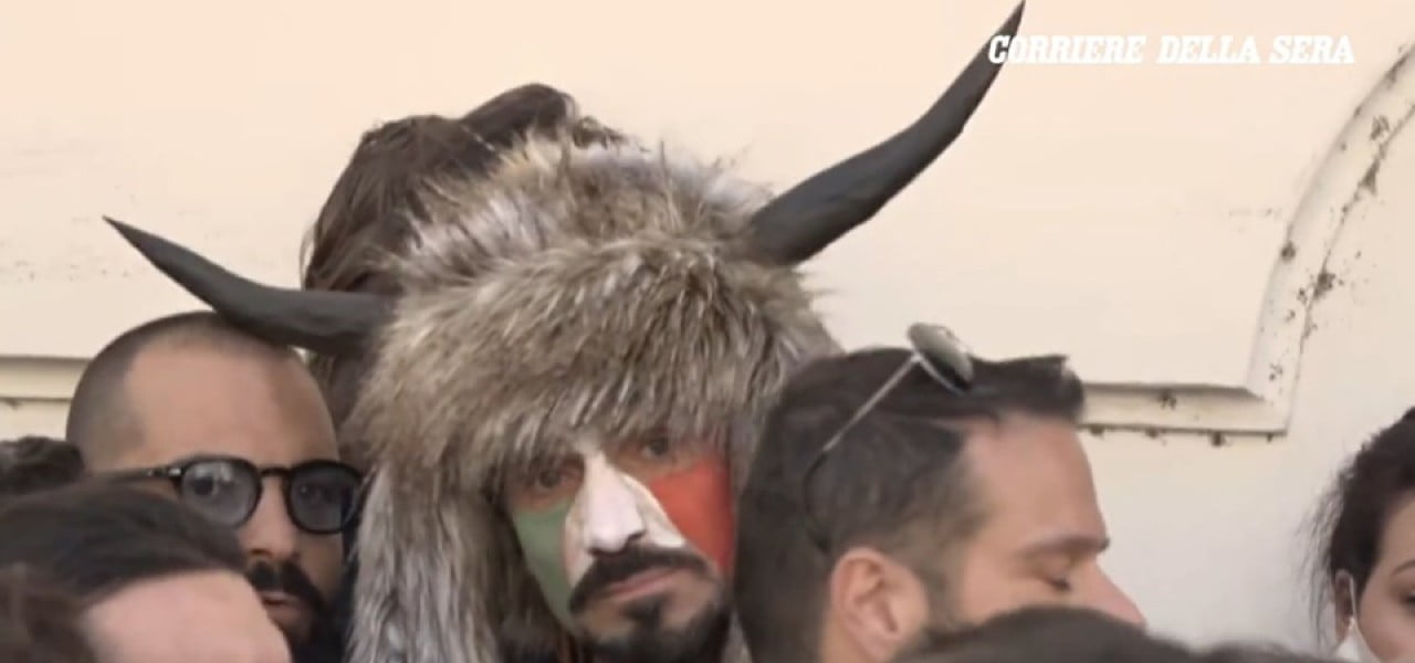 Prima o poi dove succedere anche in Italia che qualcuno decidesse di emulare quanto accaduto Oltreoceano nel giorno dell’Epifania, con le immagini di “Jake Angeli“, all’anagrafe Jacob Anthony Angeli Chansley, emblema in giro per il globo dell’assalto al Campidoglio Usa ad opera dei riottosi pro-Trump. Il volto dello Sciamano QAnon, com’è stato ribattezzato il giovane vestito da vichingo che ha guidato l’irruzione a Capitol Hill, è tornato d’attualità oggi pomeriggio, in Italia, nel corso della protesta che vede schierati davanti a Montecitorio centinaia di ristoratori e commercianti. Un uomo, poi risultato chiamarsi Ermes, è stato immortalato con il caratteristico copricapo dello Sciamano: unica differenza lampante la bandiera dipinta sul viso, non le stelle e strisce statunitensi, bensì il tricolore italiano…