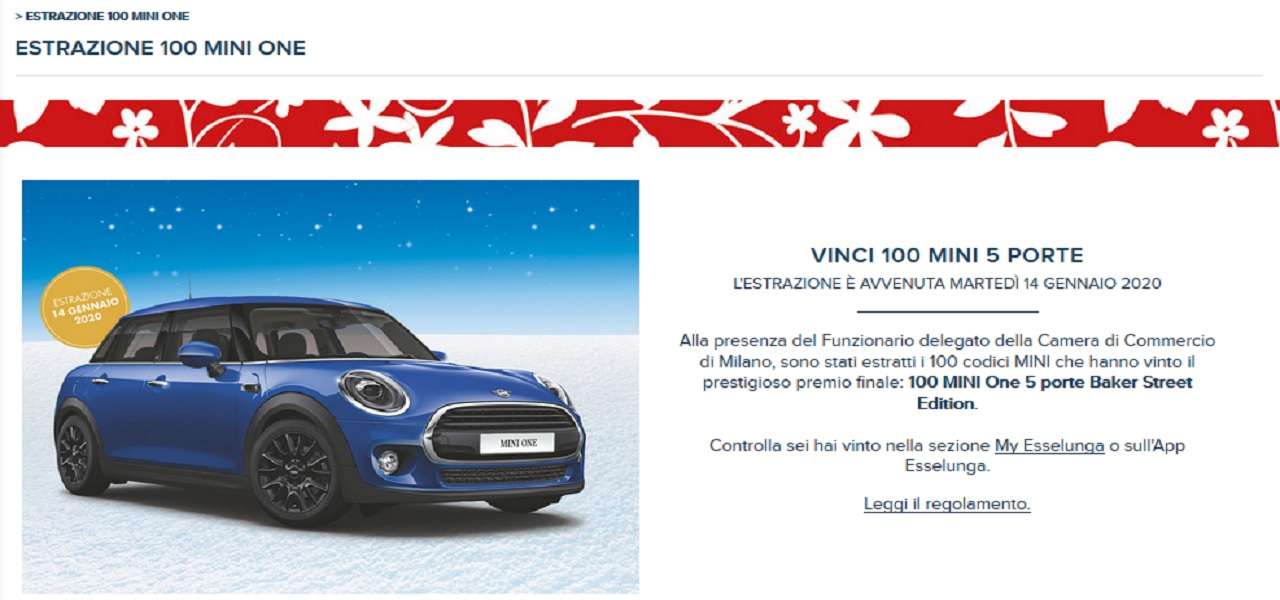 ESSELUNGA, ESTRAZIONE 100 MINI ONE I CODICI VINCENTI