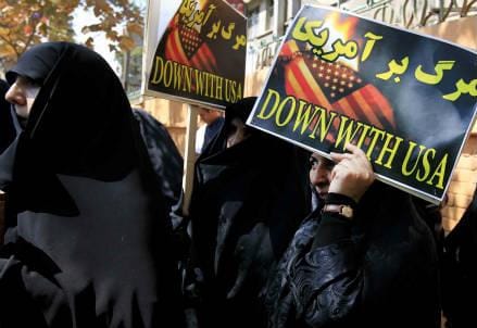 Una recente protesta davanti all'ambasciata francese di Teheran (InfoPhoto)