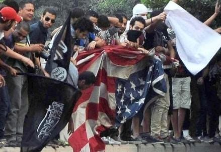Anche le dichiarazioni hanno un peso. Quando la bandiera statunitense è sottoposta a vilipendio, e la Casa Bianca non risponde in nessun modo, anzi smentisce le affermazioni dell’ambasciata stessa dichiarando che non le ha autorizzate, significa che quello in carica è un presidente senza mordente. Può quindi soltanto danneggiare gli interessi dell’America e i valori che rappresenta, come democrazia, diritti umani e libertà religiosa. Se il mondo si convincerà che gli Stati Uniti non sono in grado di difendere i loro interessi, allora si scaglierà anche contro i suoi valori.